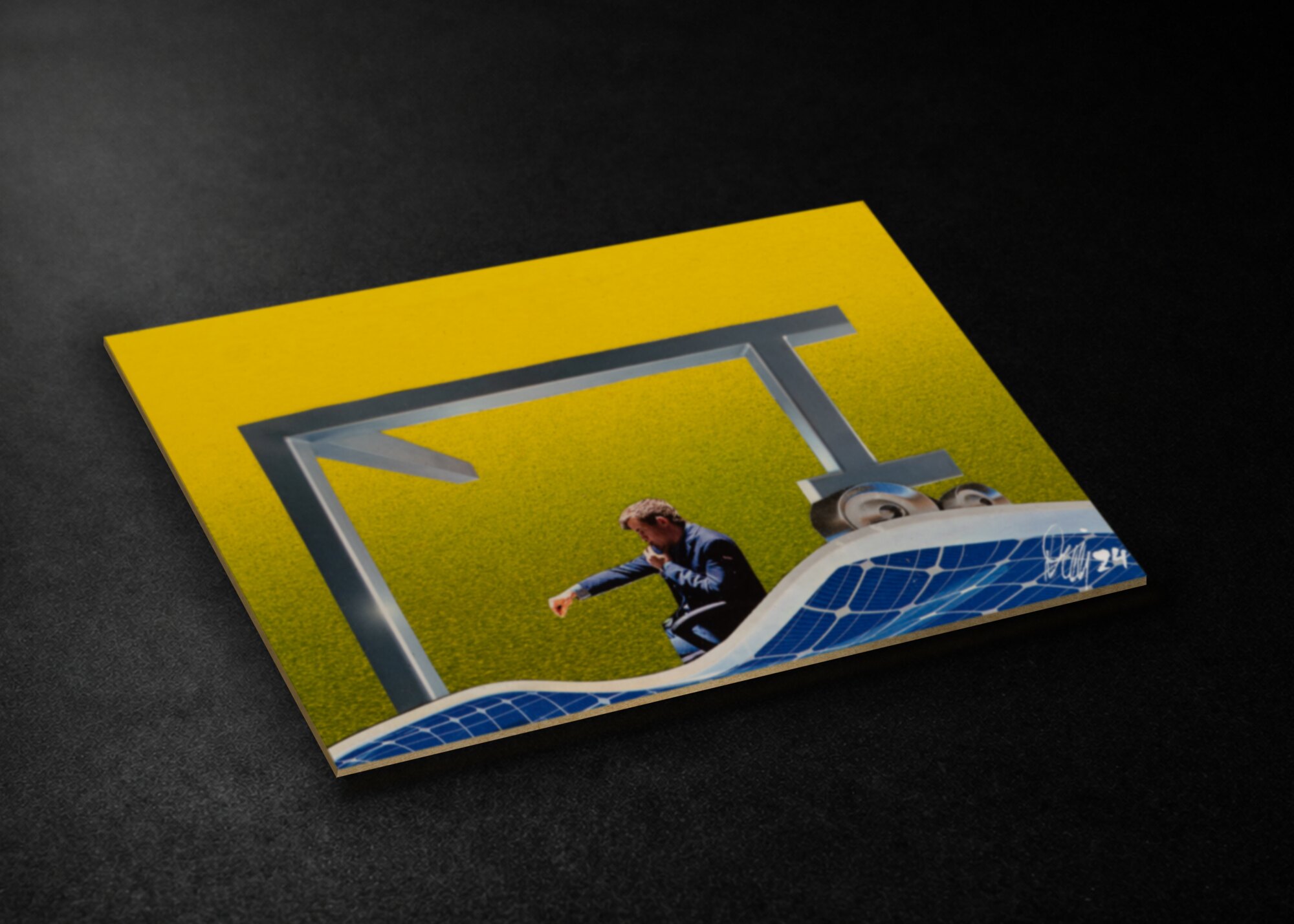 Signiertes Unikat aus dem Jahr 2025 im A6-Format (10,5 × 14,8 cm) auf 3 mm Karton. Originalcollage mit handgemaltem Acrylhintergrund, UV-Lack versiegelt und ohne Rahmen. Sorgfältig verpackt und sicher versendet.