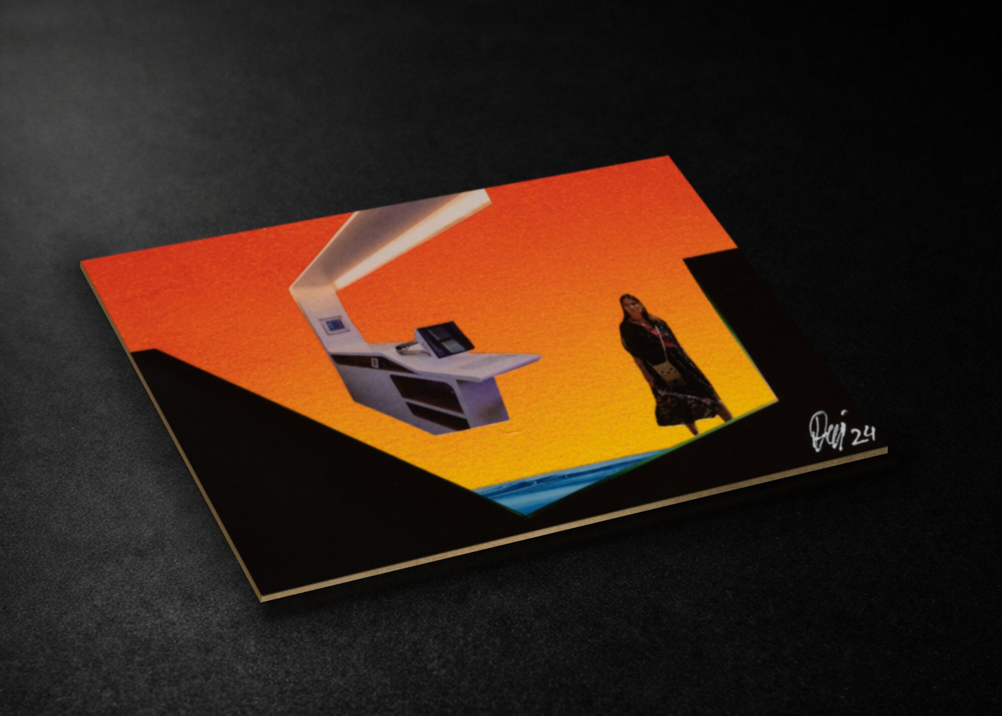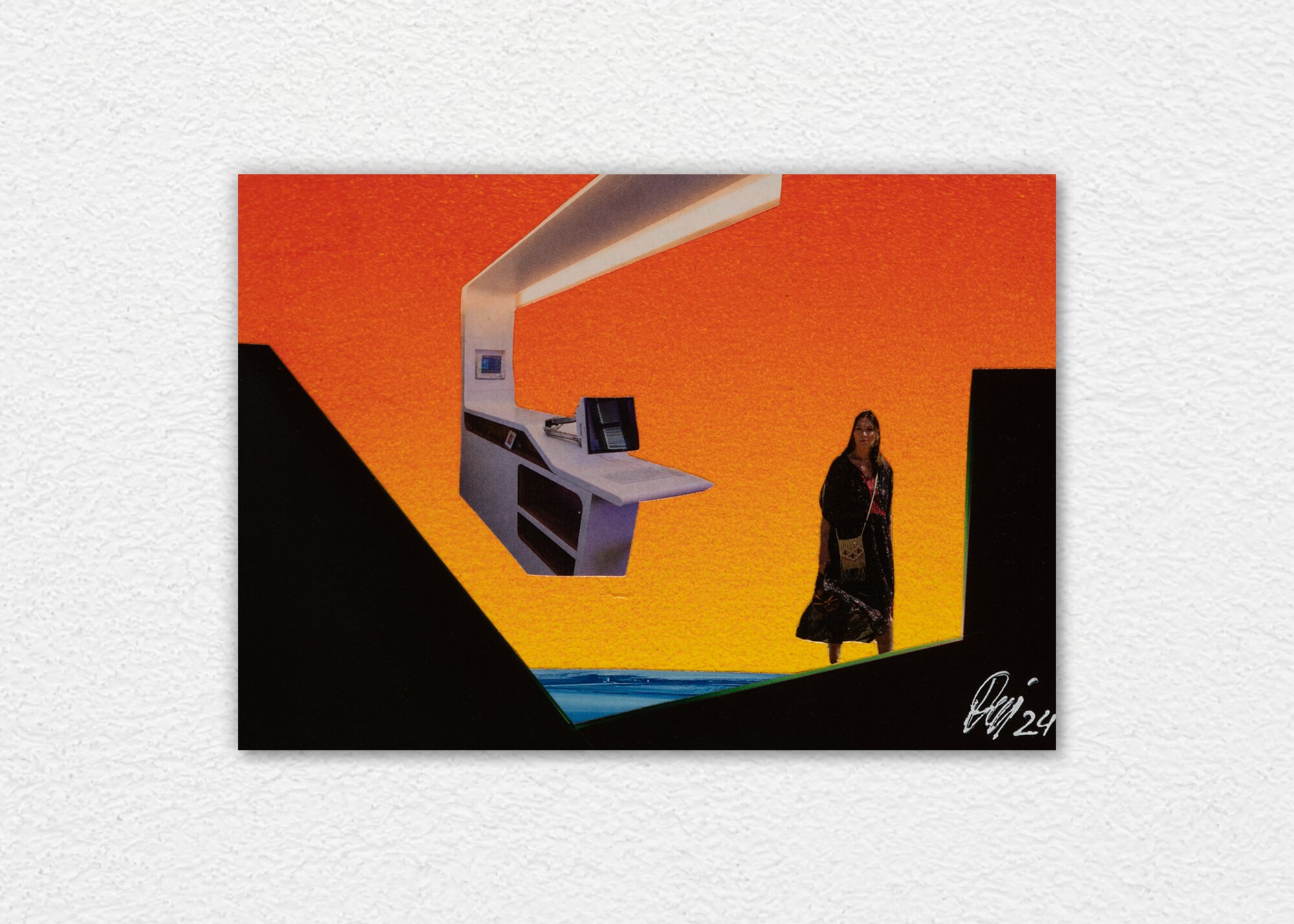 Signiertes Unikat aus dem Jahr 2025 im A6-Format (10,5 × 14,8 cm) auf 3 mm Karton. Originalcollage mit handgemaltem Acrylhintergrund, UV-Lack versiegelt und ohne Rahmen. Sorgfältig verpackt und sicher versendet.