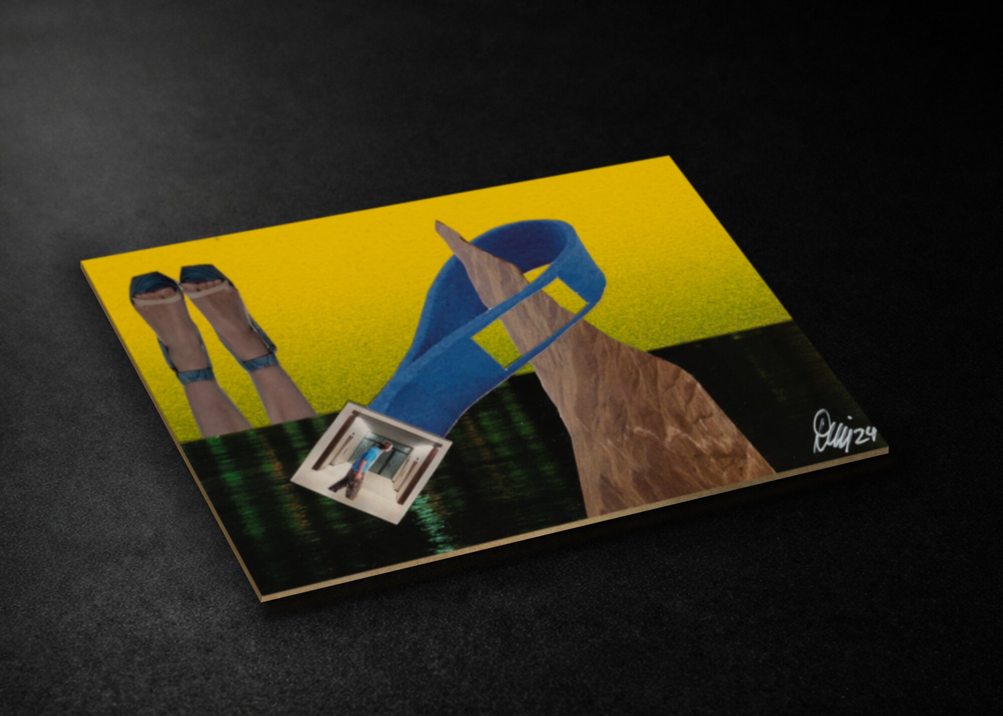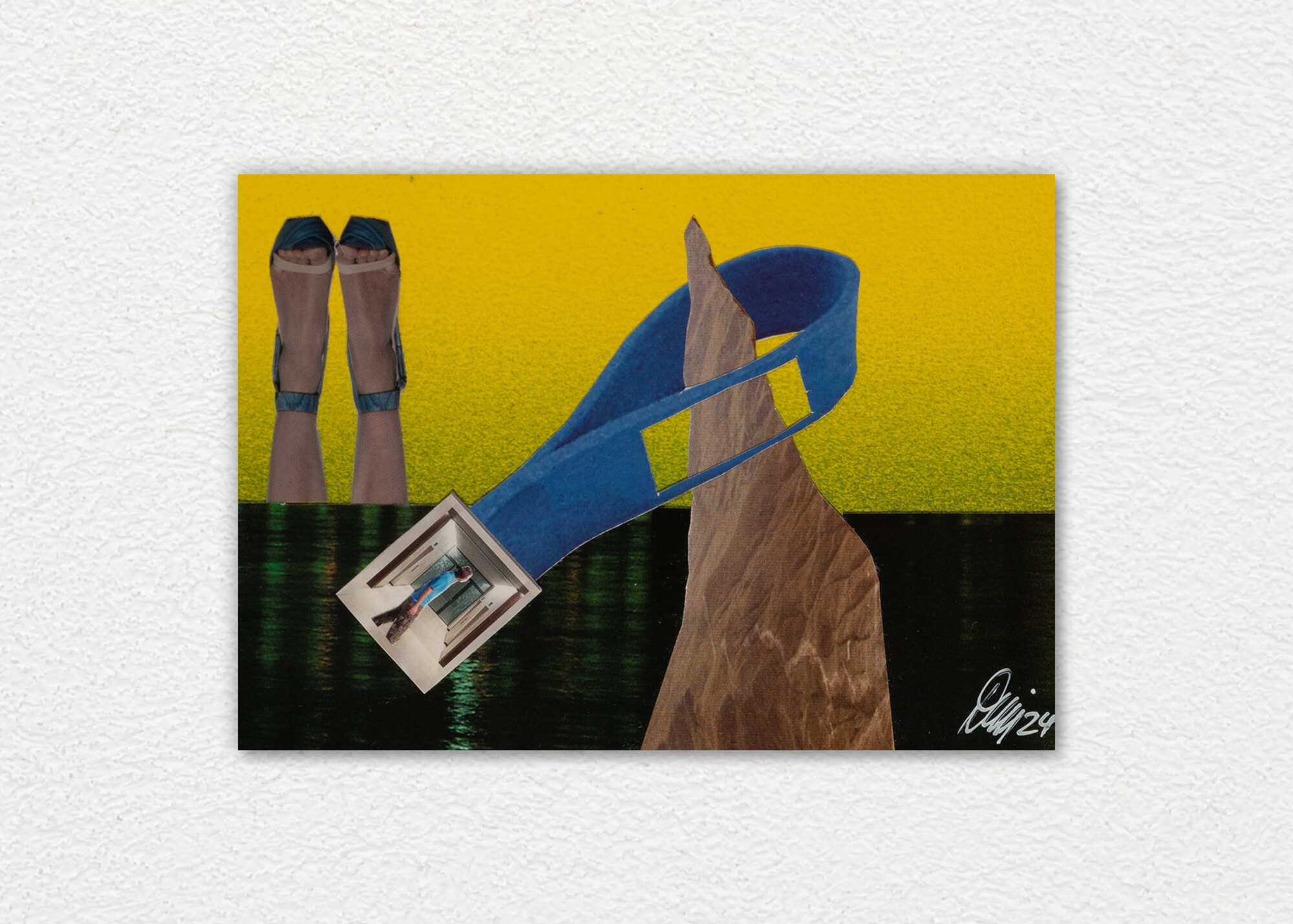 Signiertes Unikat aus dem Jahr 2025 im A6-Format (10,5 × 14,8 cm) auf 3 mm Karton. Originalcollage mit handgemaltem Acrylhintergrund, UV-Lack versiegelt und ohne Rahmen. Sorgfältig verpackt und sicher versendet.