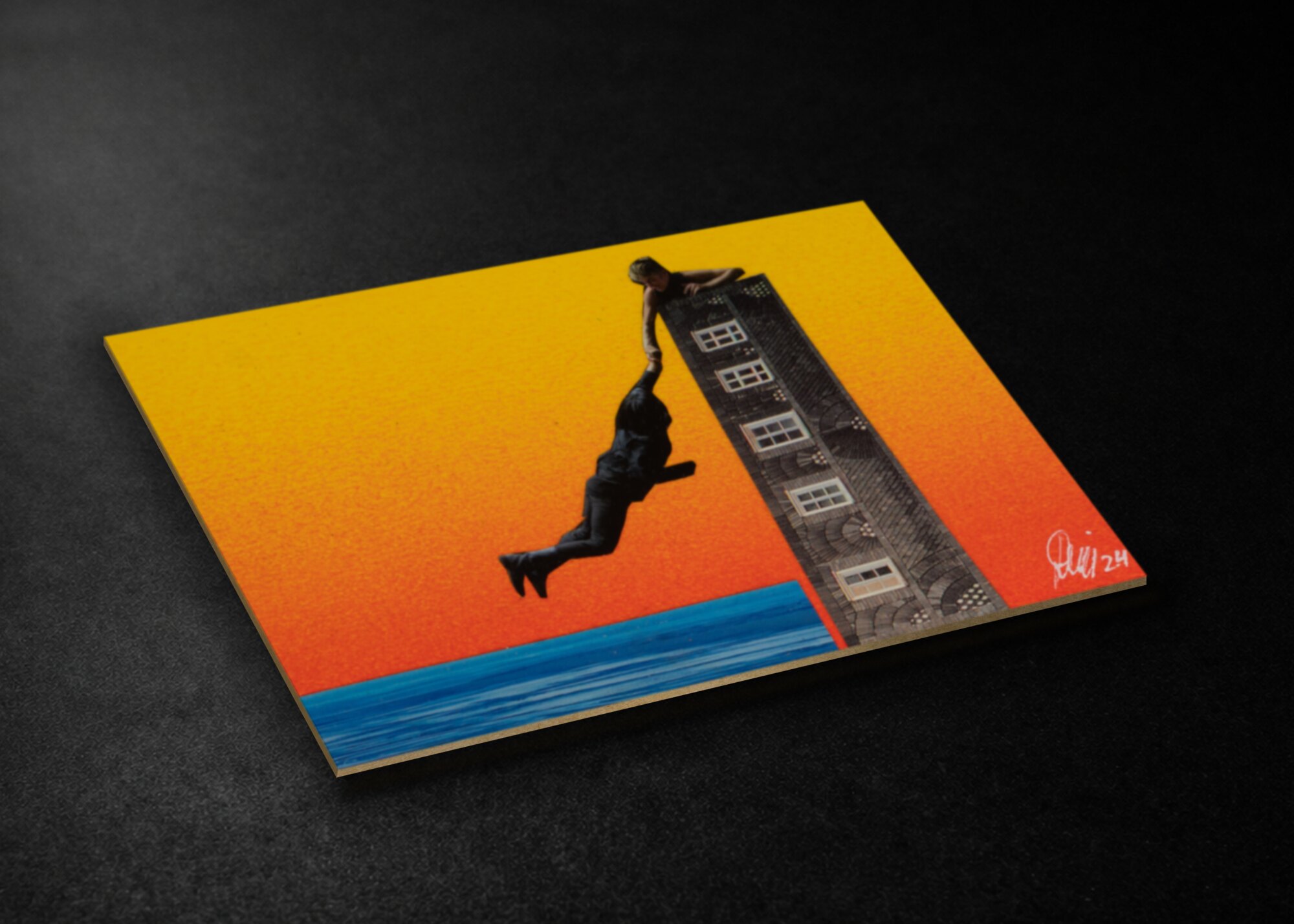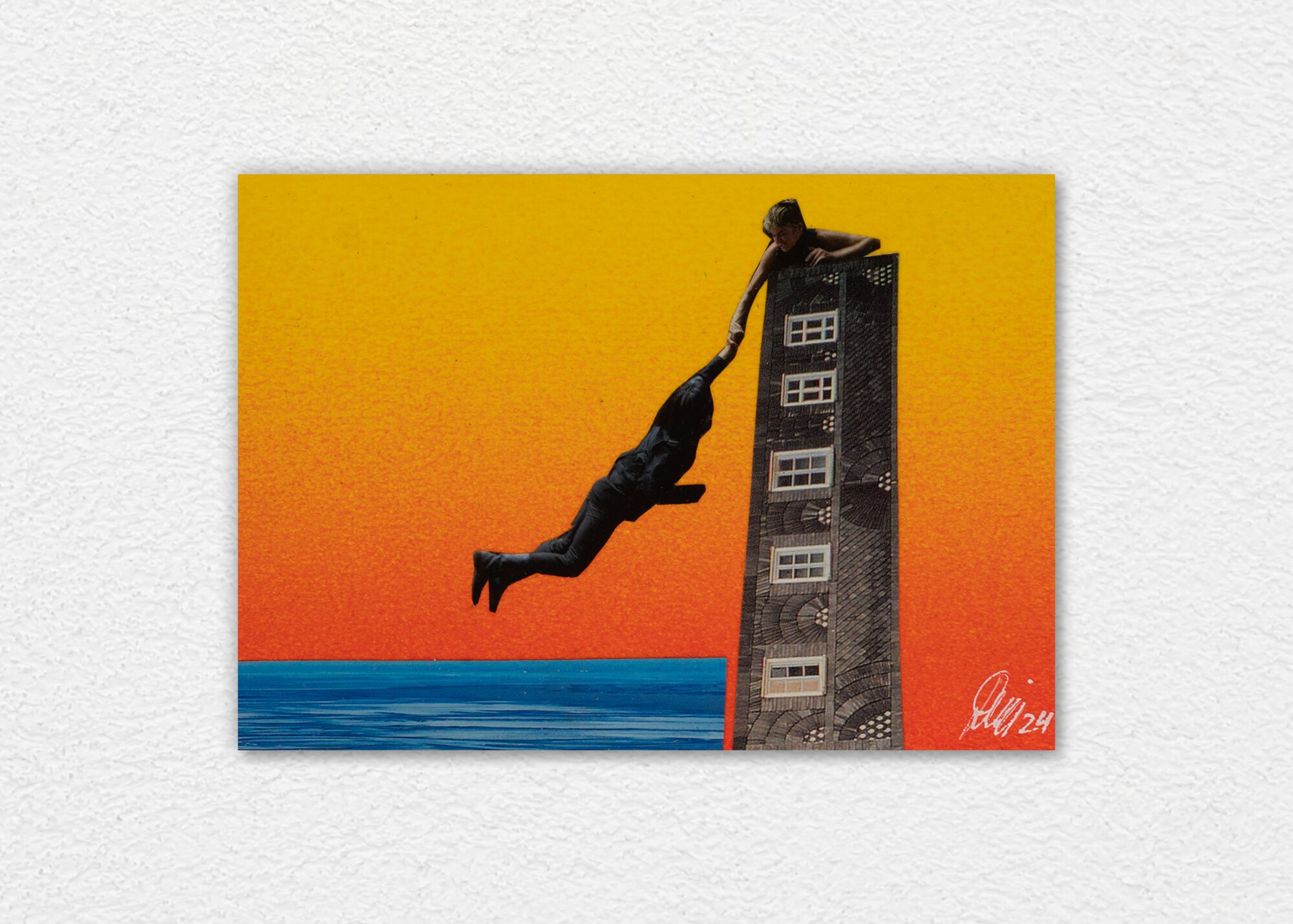 Signiertes Unikat aus dem Jahr 2025 im A6-Format (10,5 × 14,8 cm) auf 3 mm Karton. Originalcollage mit handgemaltem Acrylhintergrund, UV-Lack versiegelt und ohne Rahmen. Sorgfältig verpackt und sicher versendet.